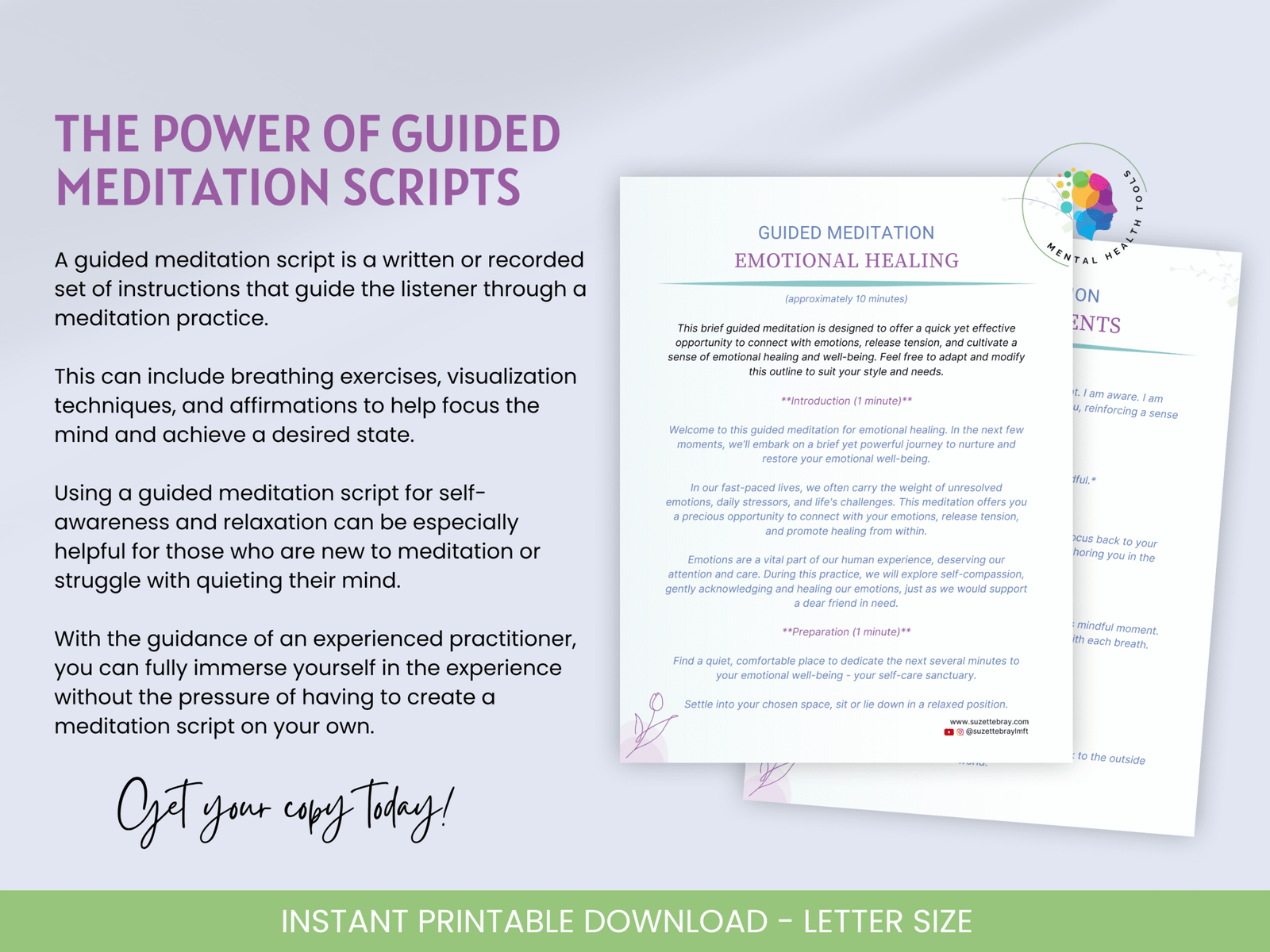 This 152-page printable PDF includes 15 crafted scripts—each available in 1, 5, and 10-minute versions. Use them in individual sessions, groups, or personal practice with ease.
